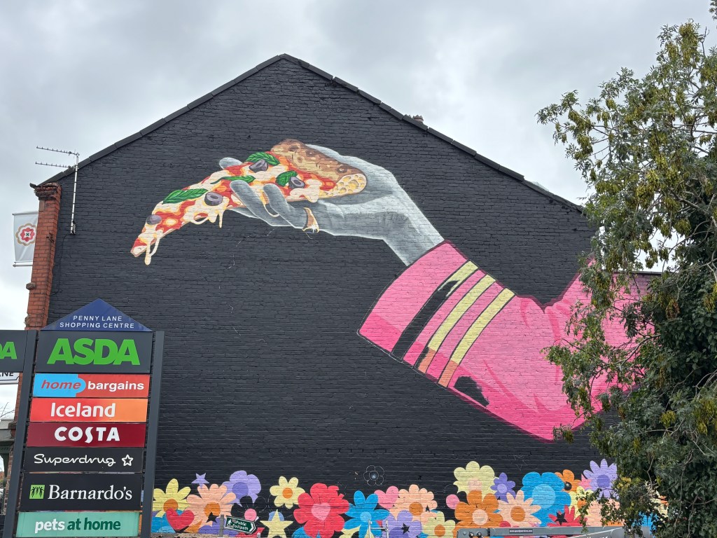 This week (August 18), the Penny Lane mural started taking shape at the top of the street near the Richmond Tavern. The artwork features Ringo Starr’s hand holding a slice of pizza and is being created in collaboration with a new local pizzeria.